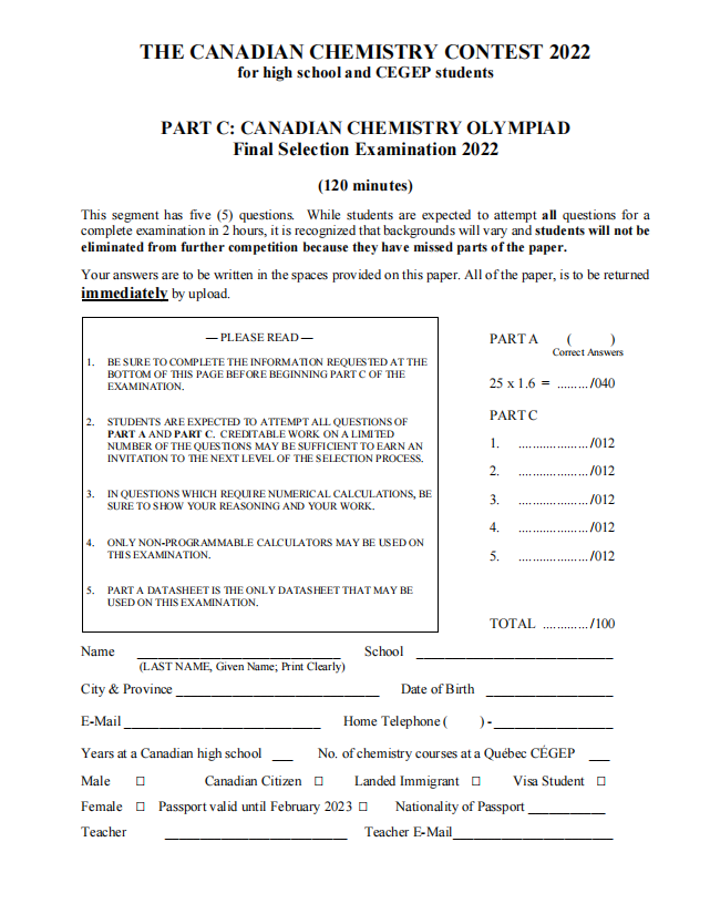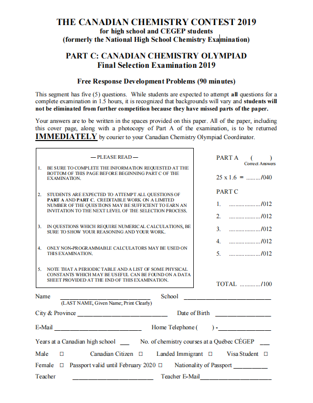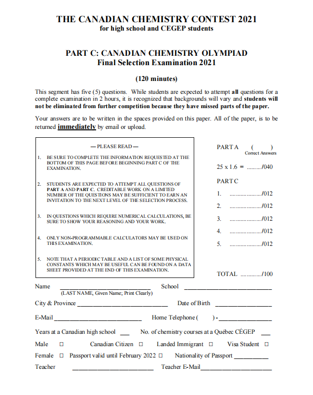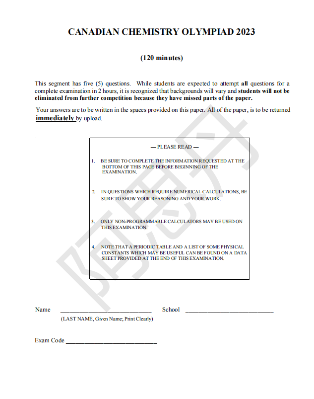 CCO化学竞赛近十年真题&答案+备赛书单+必备单词+最新考纲⇓