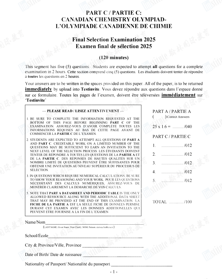 2025赛季CCO化学竞赛高清PDF版真题待领取! 2025赛季CCO化学竞赛真题 *篇幅有限,仅展示部分 备赛的同学可扫码免费领取2025赛季CCO化学竞赛真题+答案解析⇓ 还可免费领取CCO近十年真题&答案+备赛书单+必备单词+最新考纲